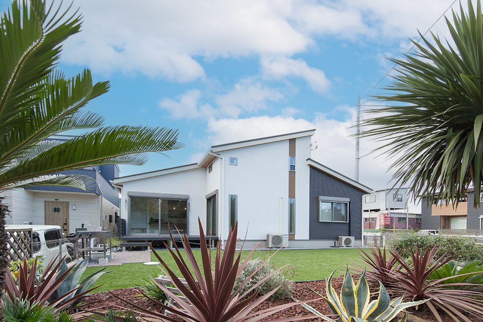 子育て世代の暮らしやすさを考えた平屋。LDKから直接出られる庭や、料理中でも子供と話せるカウンターなど、家族の時間を大切にする住まいです。