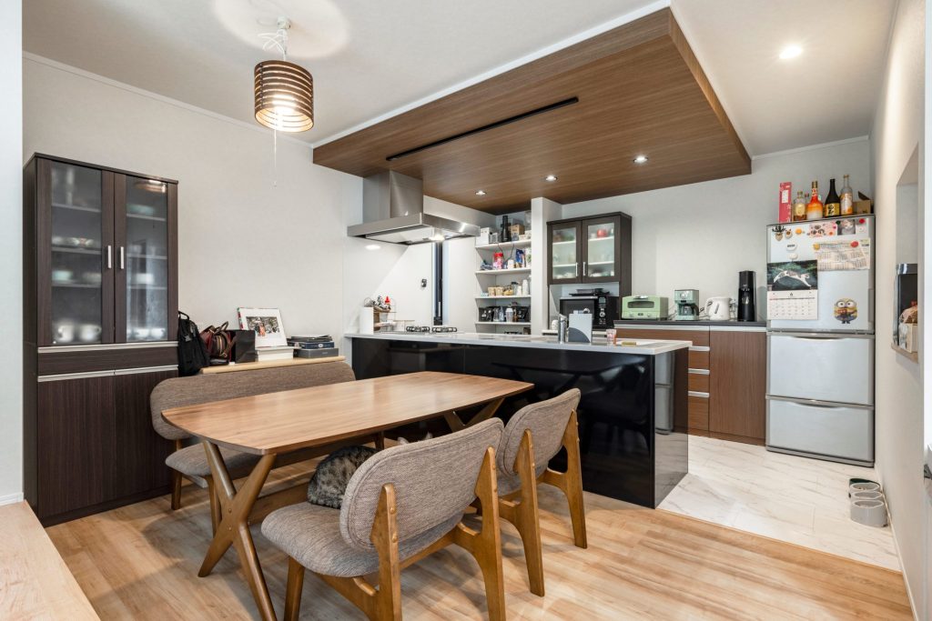 LDKの色味は持っていた家具に合わせ、落ち着いたダークブラウンとブラックで統一。