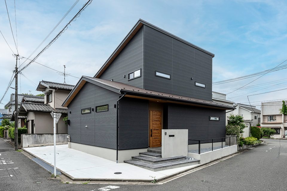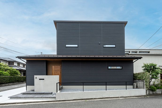 もう1色は、玄関のテイストと合わせて木目を採用し、スタイリッシュでかっこいい外観にこだわりました。
