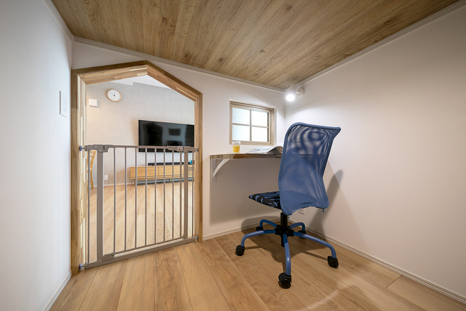 書斎は、主に私(奥様)の仕事場として使用しています。憧れだったデコマドをつけたことで、閉塞感もあまり感じません。