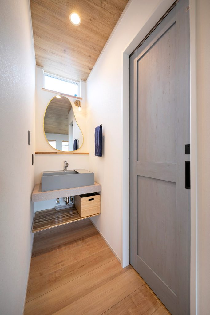 「スキップフロア・水回りを集約・パントリーに冷蔵庫を収納・造作の独立洗面台を2カ所・トイレは引き戸・カラードア、、、」などなど、たくさんこだわりを実現できて嬉しいです。