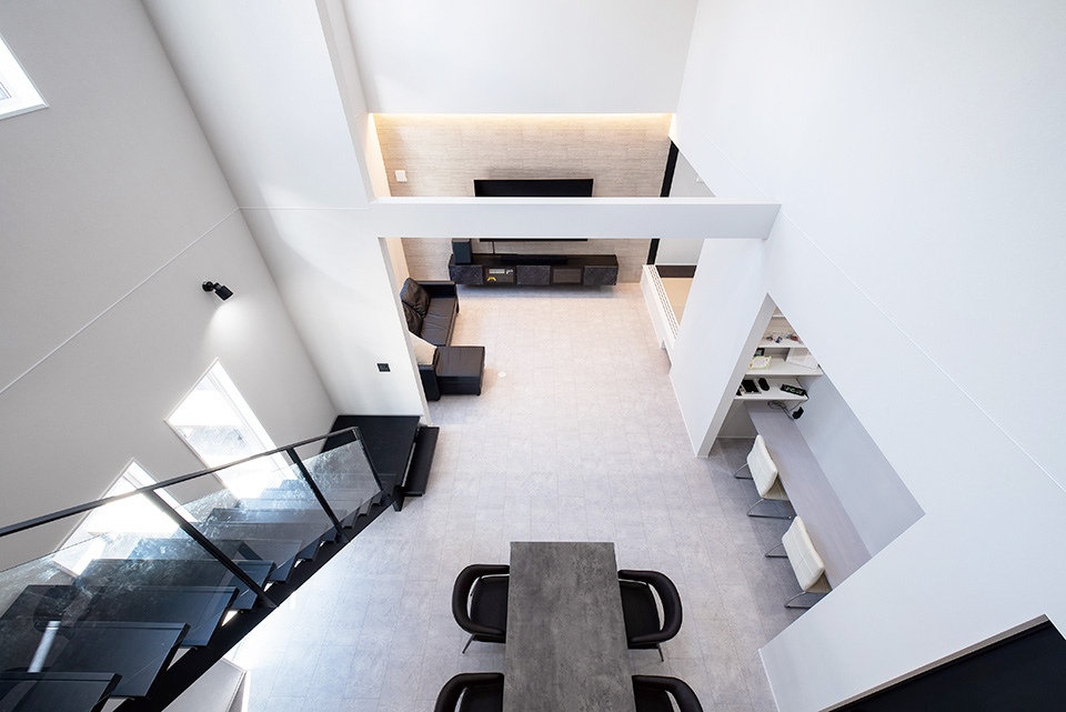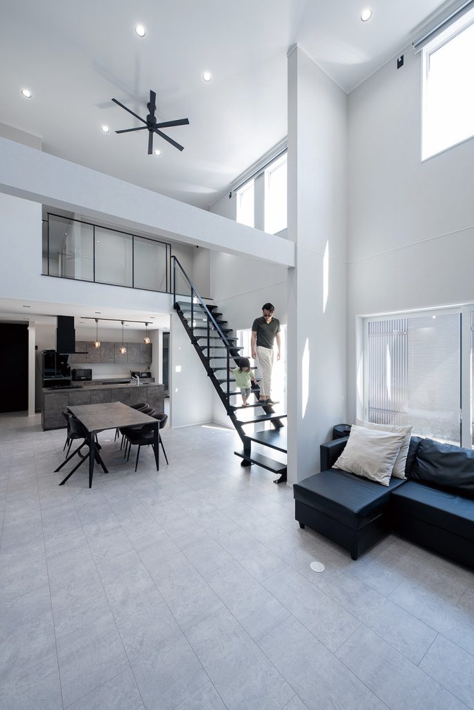 天井を高くし、さらに吹き抜けを設けることで、より開放的な空間を演出しています。
