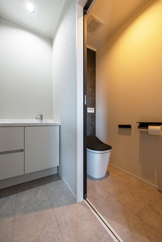 また、トイレはタンクレスを選び、空間をすっきり見せました。蓋のカラーバリエーションが豊富だったので、1階は沙金(サキン)、2階はブラック(エボニー)を選びました。