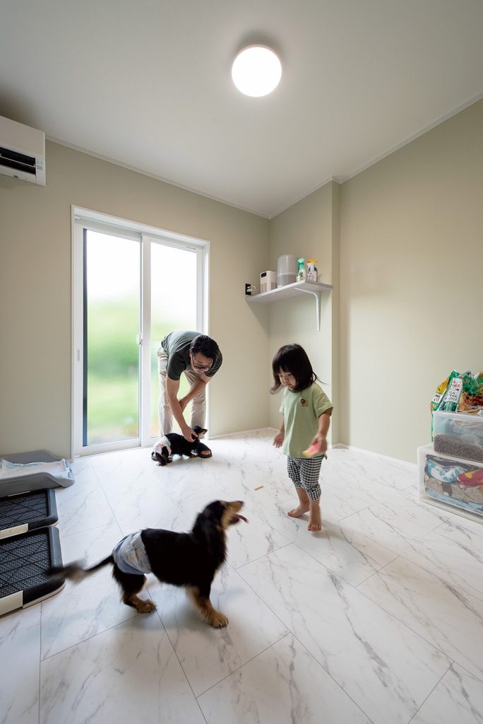 ゆくゆくは裏の庭をドッグランにする予定なので、出入りがしやすいよう、2部屋とも北側に設けました。