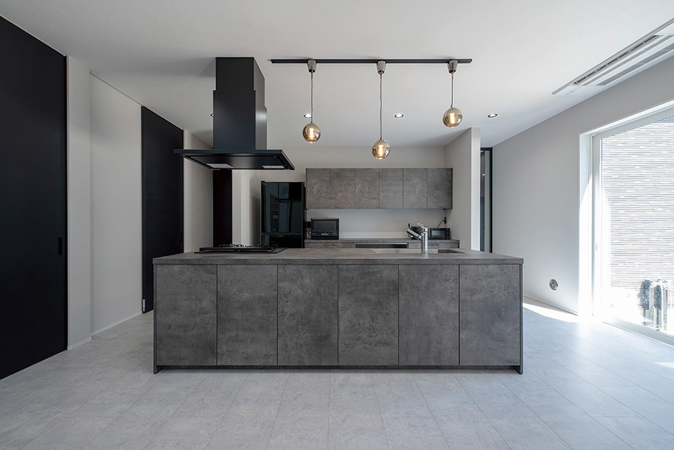 LDKは、白×黒×グレーの3色でまとめて、ホテルライクな空間にしました。