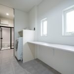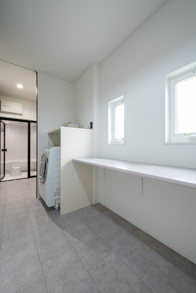 洗濯は室内干し派なので、ランドリールームを設けました。洗濯物が畳めるようにカウンターもつくっています。