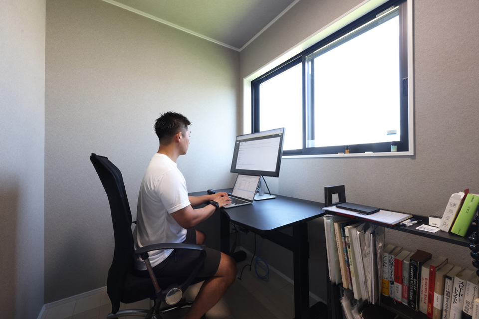 おもに主人のリモートワークスペースとして使用しています。3帖のスペースですが、しっかり集中できる空間です!