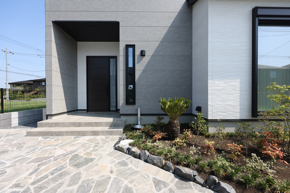 カラーは内装と合わせて、グレーとホワイトを採用。特に大判のグレーの外壁材は高級感がありますし、周辺をみても使用している家がないので差別化ができたことがうれしいです。
