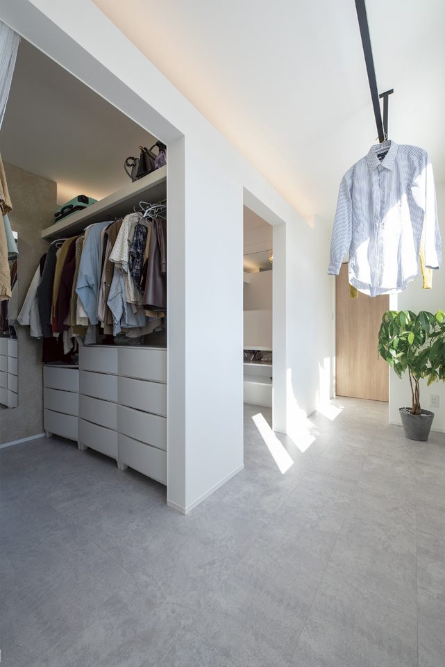 バルコニーを設けない代わりに、室内干しのスペースをつくりました。