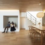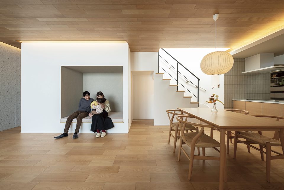 リビングの一角に、ヌックを設けました。箱っぽい空間で、子どもがお昼寝したり遊んだりするスペースになったらいいなと思ってつくった場所です。友人が大人数で遊びに来た時には、椅子の代わりにもなって便利です。