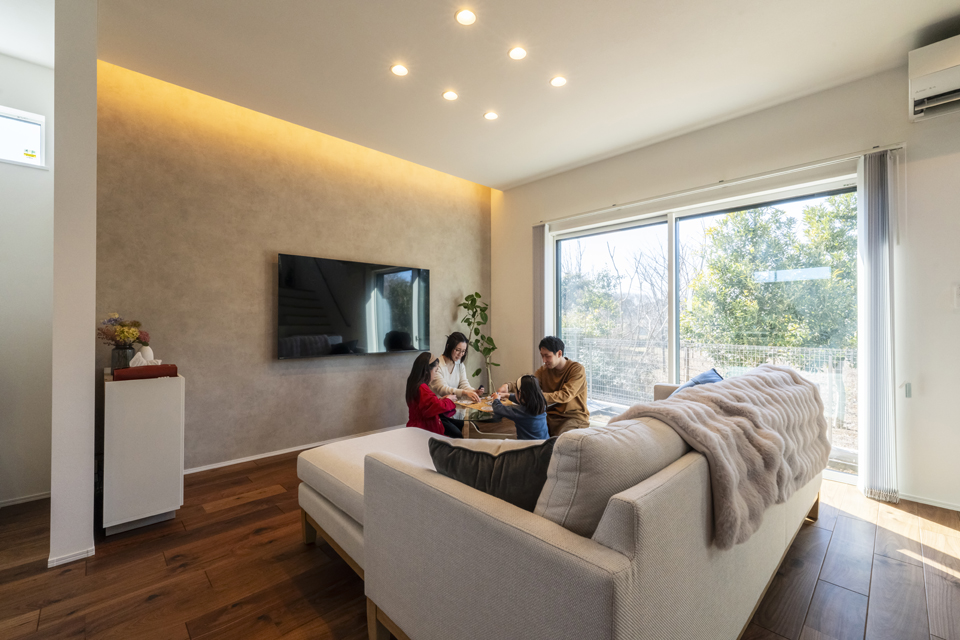 テレビ上の間接照明は設計さんに提案いただいたもので、とても気に入っています。採用してよかったです!