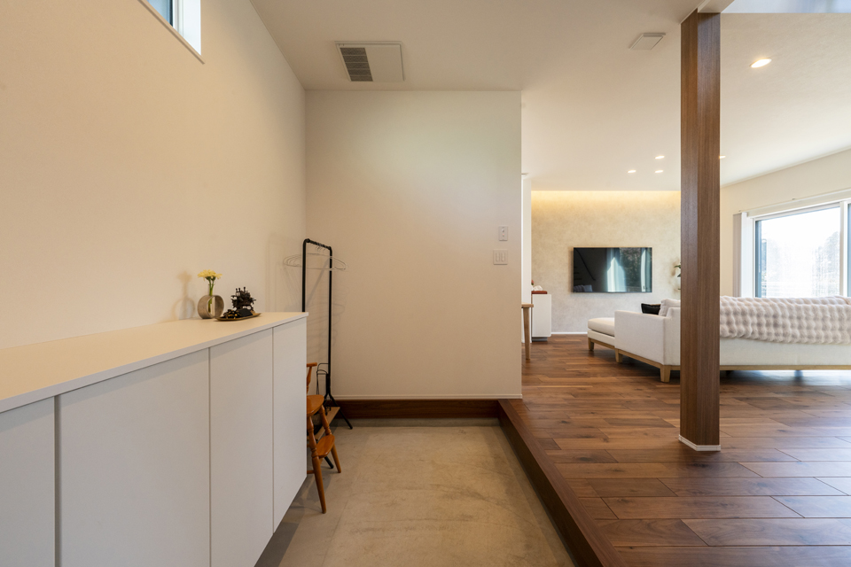 また、LDKとの境界をなくしたいと思い、あえて扉は設けませんでした。おかげで開放感のある玄関になったと思います。