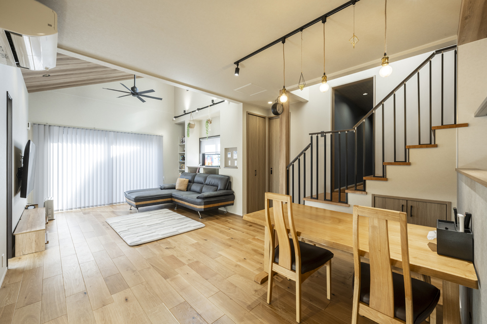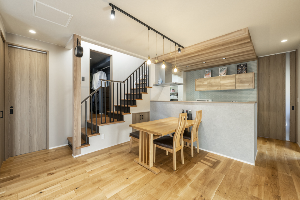ダイニングとキッチンは、船橋展示場で見たカフェっぽい雰囲気を参考にしました。