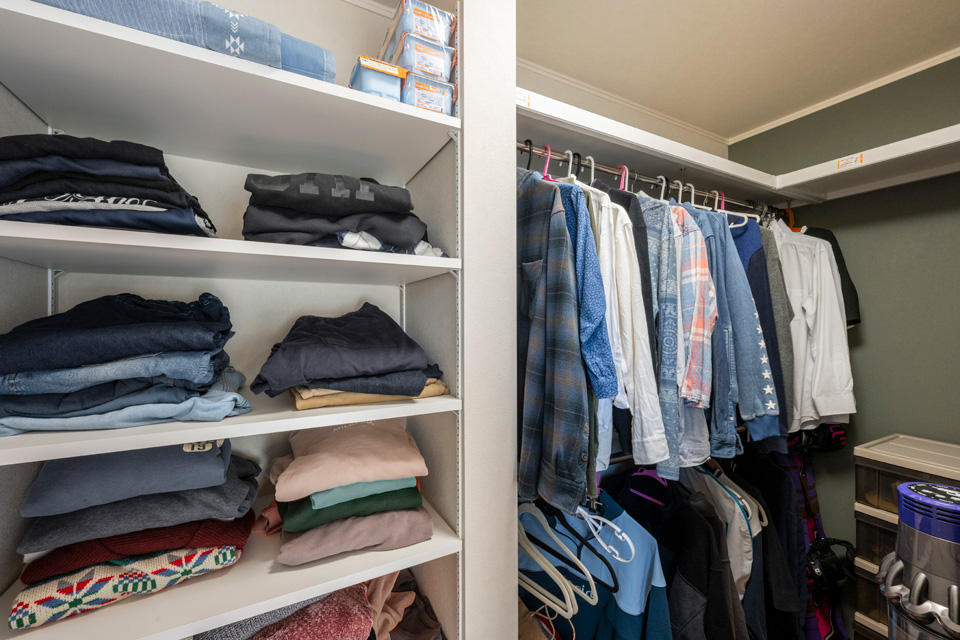 毎日使う服は1Fに置いておきたかったので、忙しい朝もスムーズに着替えができるのがありがたいですね。主に仕事着をしまっています。