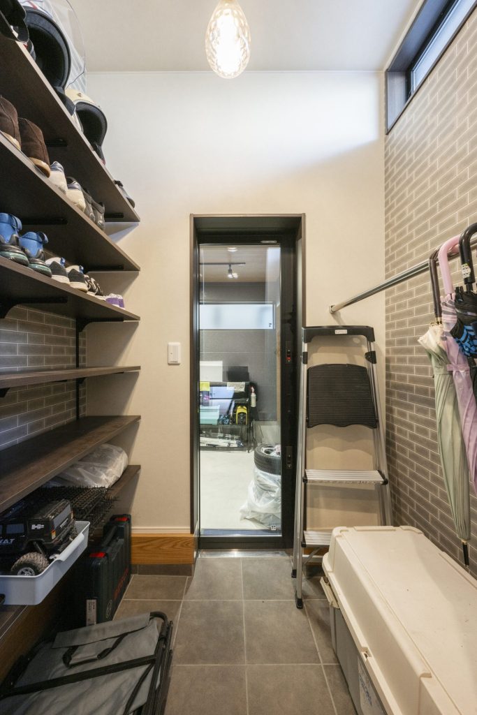 主に家族の靴やアウトドア用品をしまっています。SICとも繋がっていて使い勝手もいいですね。