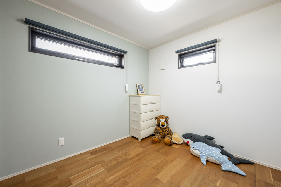 子ども部屋は一面をアクセントクロスにしたのもポイントです!