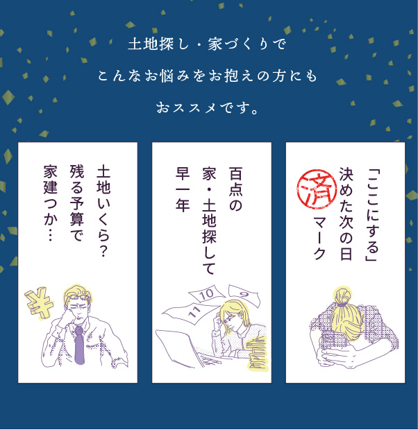 地域最大級の最新土地情報と間取りのご提案まで完結できる