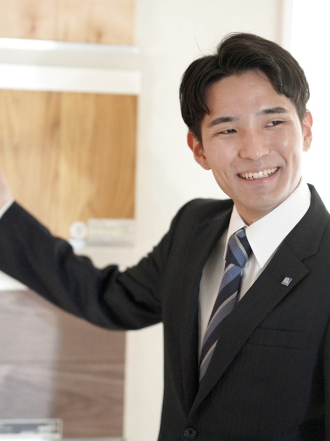 大学院に進もうとしていましたが、進学を辞め、就活を始めました。みんなよりスタートが遅れたこともあり、自分で約20社の展示場を訪れ、その中で広島建設とも出会いました。ここで、案内してくれた社員の話がきっかけで、選考に進もうと思いました。展示場を訪れるまで知らない会社でしたが、他の会社よりも自由度が高く、色々な経験ができそうだなと。担当者の裁量権が大きく、自由な提案ができるところが、自分の就活軸とも合っているなと、自分の目で見て、感じました。