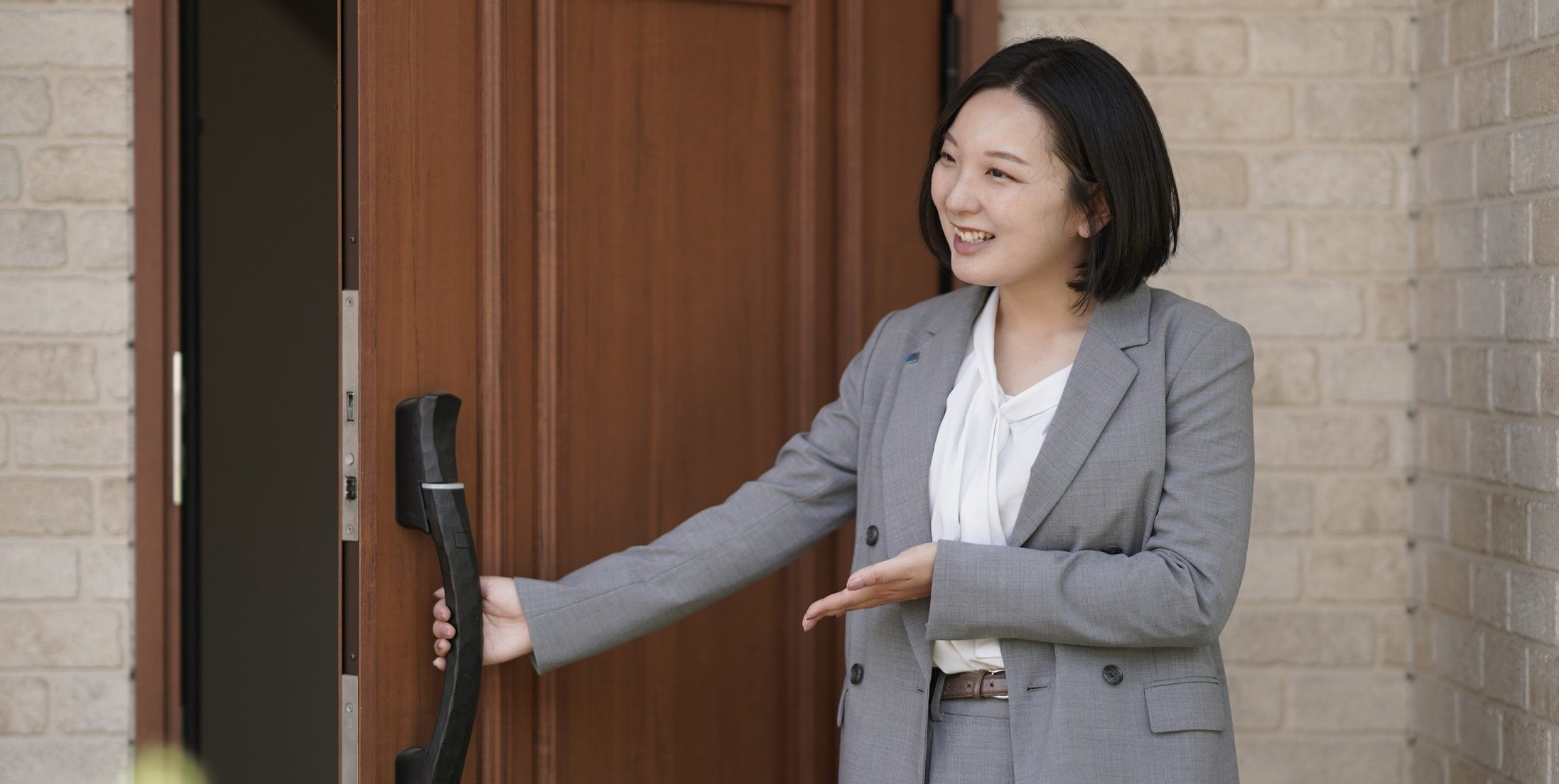 私は、土地と建物をセットで販売する「分譲住宅」の営業をしています。ご案内を希望されるお客様にモデルハウスや現地にご来場いただき、販売物件の仕様や近隣環境、ローンのご相談など、お客様のご希望に合わせた理想のお住まいを提案しています。また接客だけではなく集客のための販売活動もメイン業務で、HPやポータルサイトに物件情報を掲載したり、チラシを作成して近隣にポスティングをしたり、来場するお客様への誘導看板を作成したりと多岐に渡ります。分譲住宅のコンセプトから企画に入ることもあり、何もない更地から建物が完成し、そこに住まう人々の笑顔を見られるのは、この仕事ならではのやりがいです。そして「こんな素敵な街ができたんだ」と、街づくり全体に貢献できることが、この仕事の魅力だと感じています。