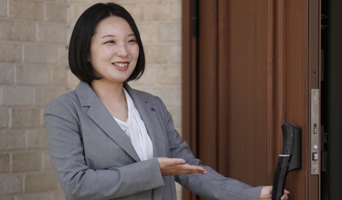 私は、土地と建物をセットで販売する「分譲住宅」の営業をしています。ご案内を希望されるお客様にモデルハウスや現地にご来場いただき、販売物件の仕様や近隣環境、ローンのご相談など、お客様のご希望に合わせた理想のお住まいを提案しています。また接客だけではなく集客のための販売活動もメイン業務で、HPやポータルサイトに物件情報を掲載したり、チラシを作成して近隣にポスティングをしたり、来場するお客様への誘導看板を作成したりと多岐に渡ります。分譲住宅のコンセプトから企画に入ることもあり、何もない更地から建物が完成し、そこに住まう人々の笑顔を見られるのは、この仕事ならではのやりがいです。そして「こんな素敵な街ができたんだ」と、街づくり全体に貢献できることが、この仕事の魅力だと感じています。