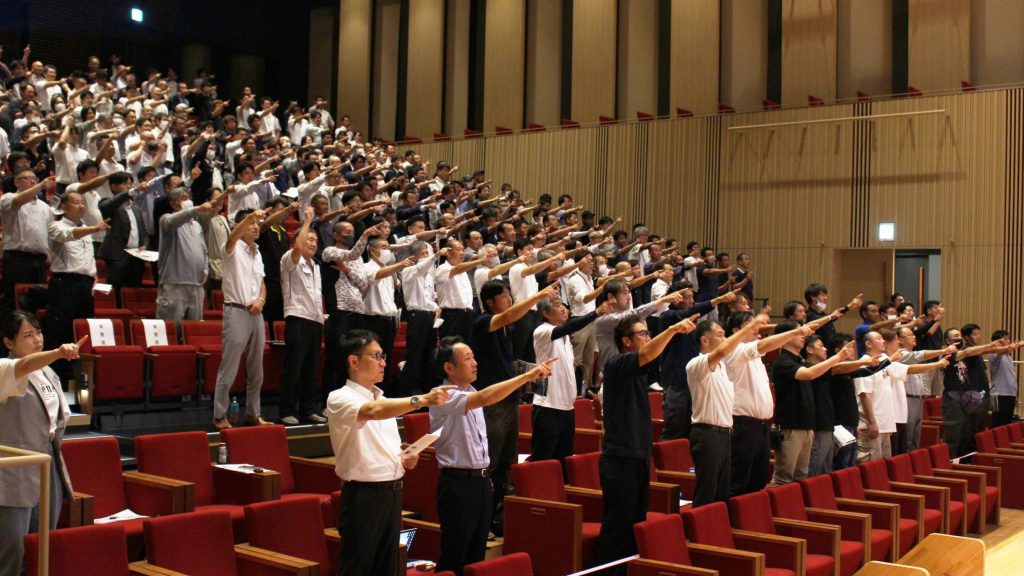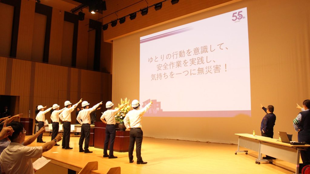 毎年恒例の安全衛生大会ですが、今年もたくさんの協力業者の皆様にお集まりいただき、安全に対する意識を高めることができました。