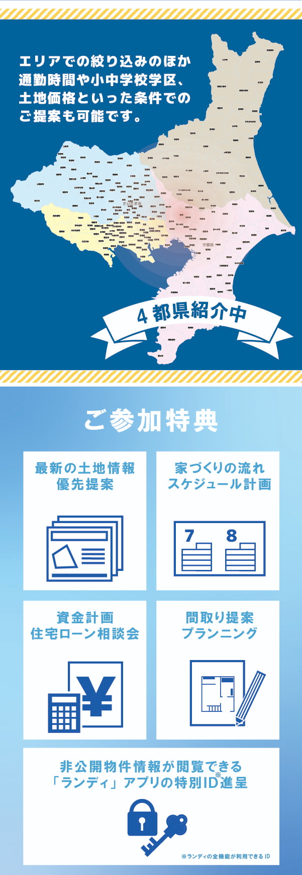 東京ノイエから、-4都県土地フェスタ-開催のご案内です。-4都県土地フェスタ参加5大特典-